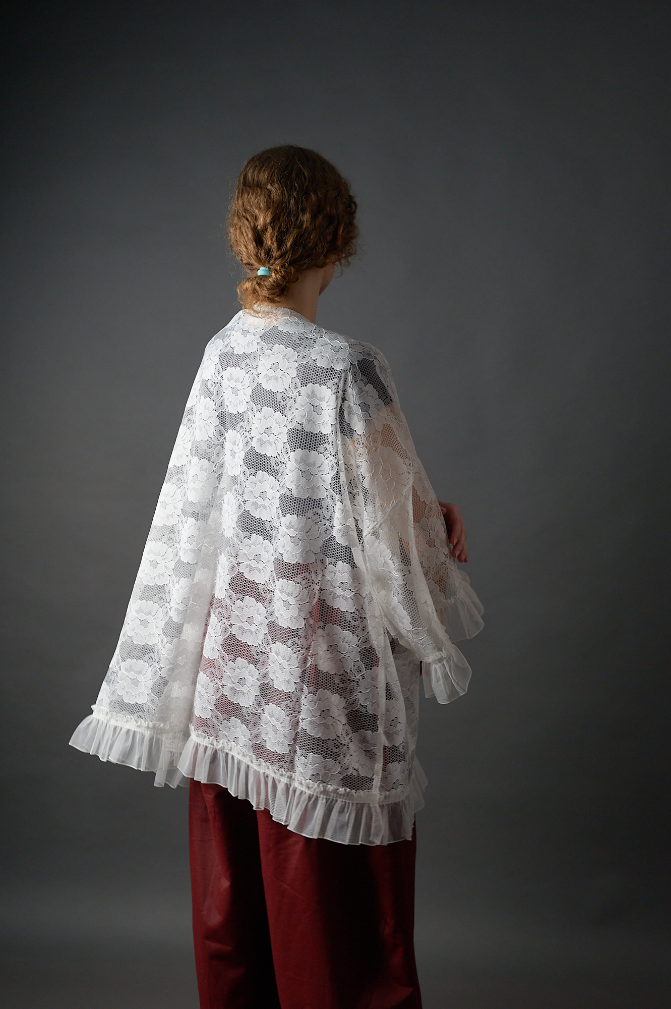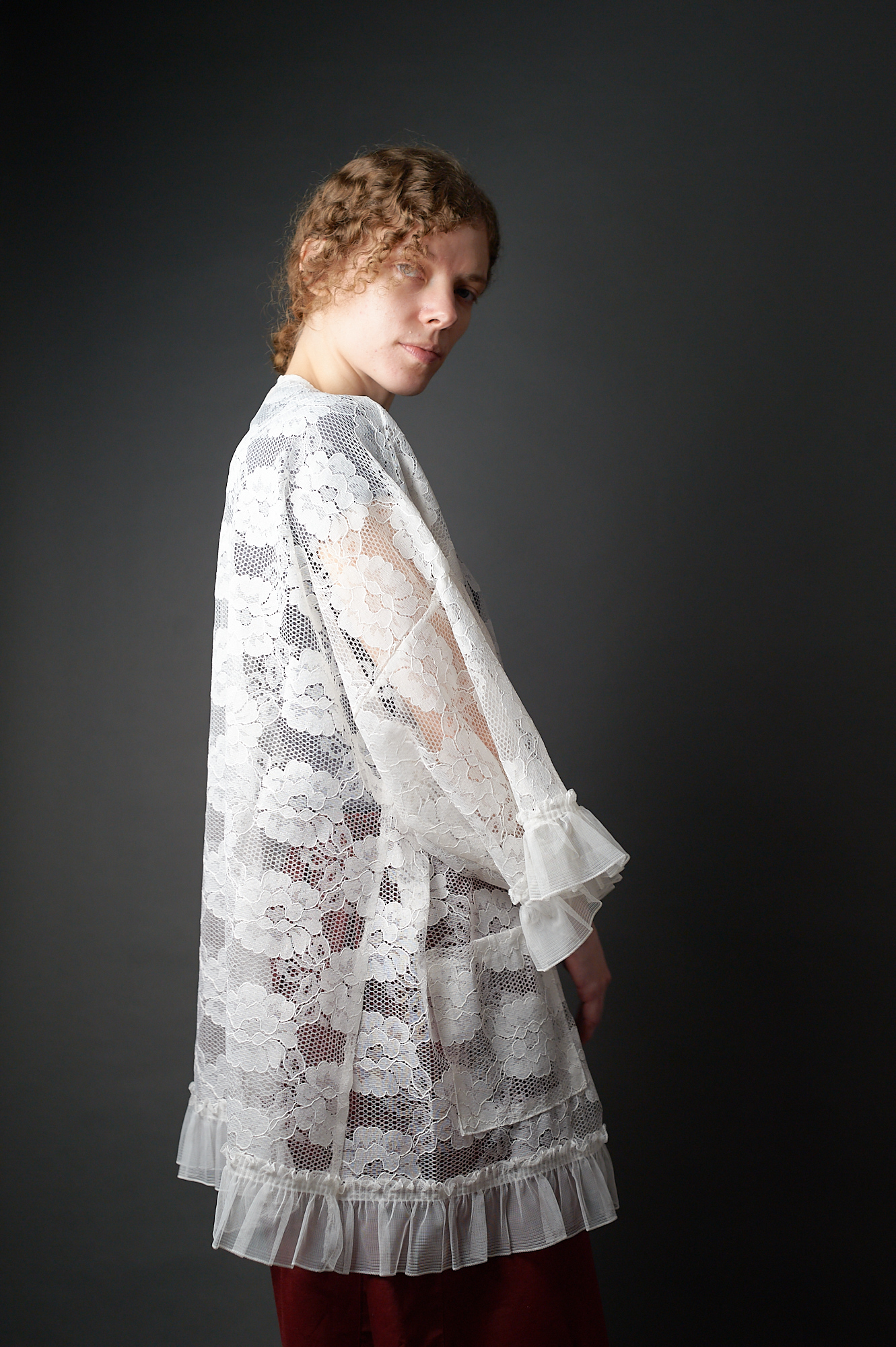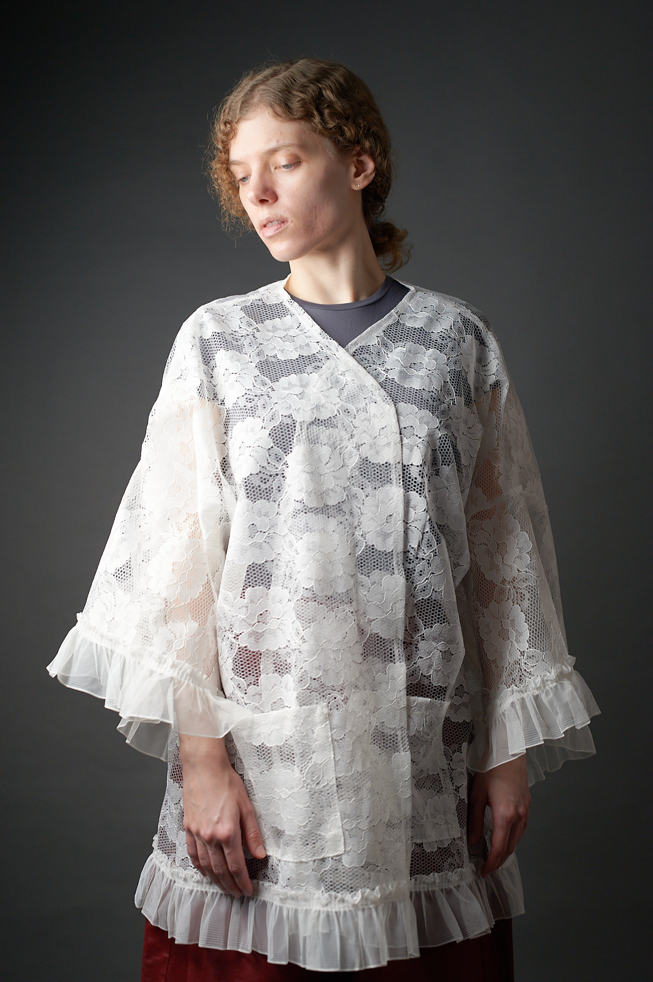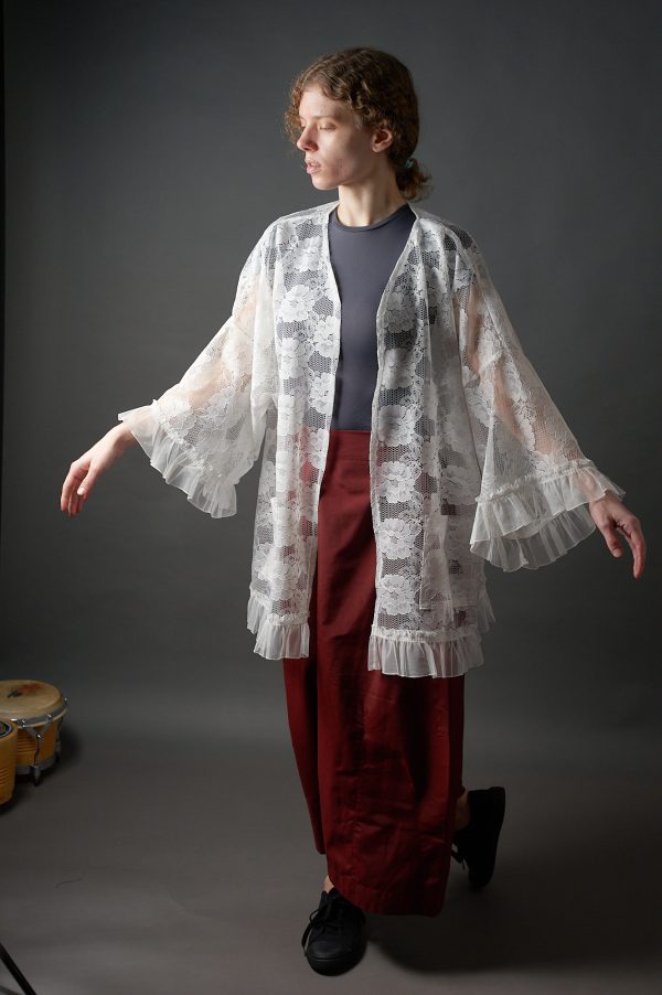 Długa kimonowa bluzka – płaszczyk z koronki