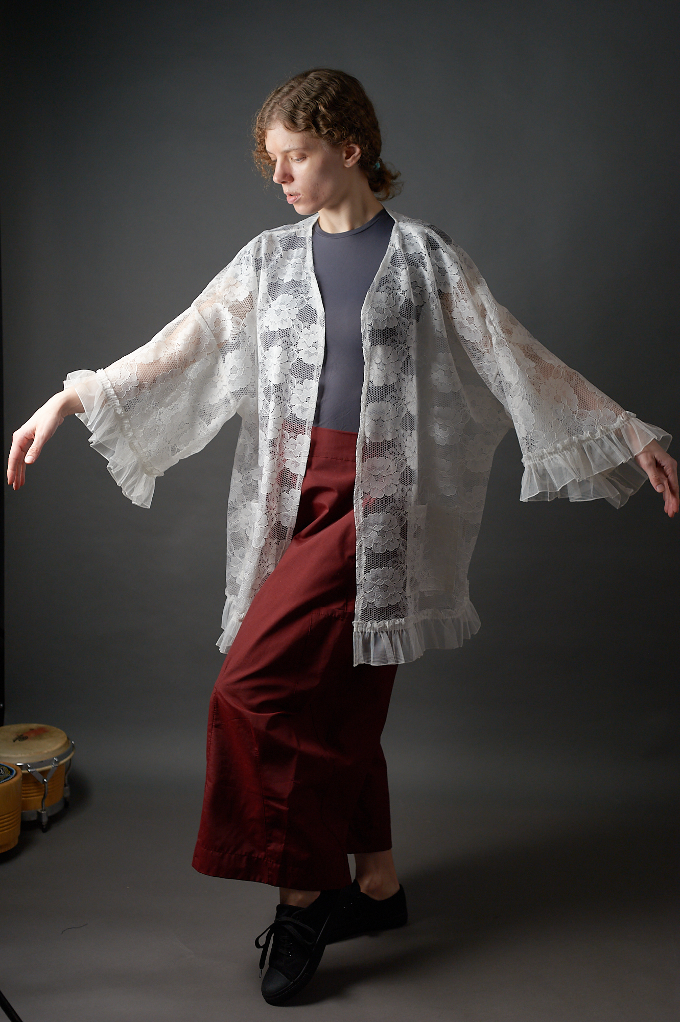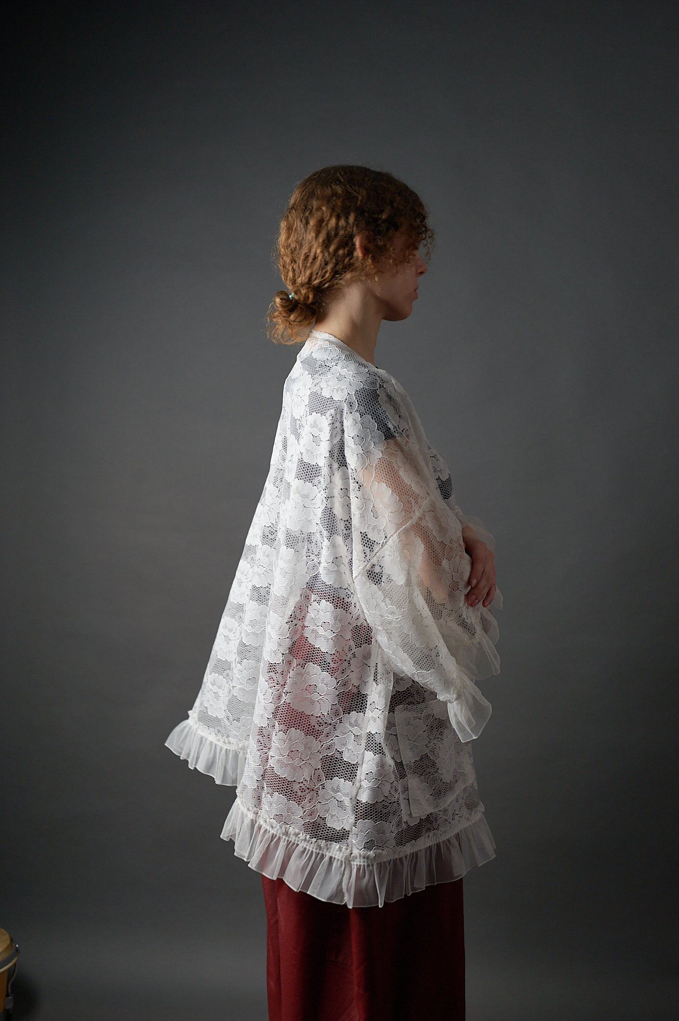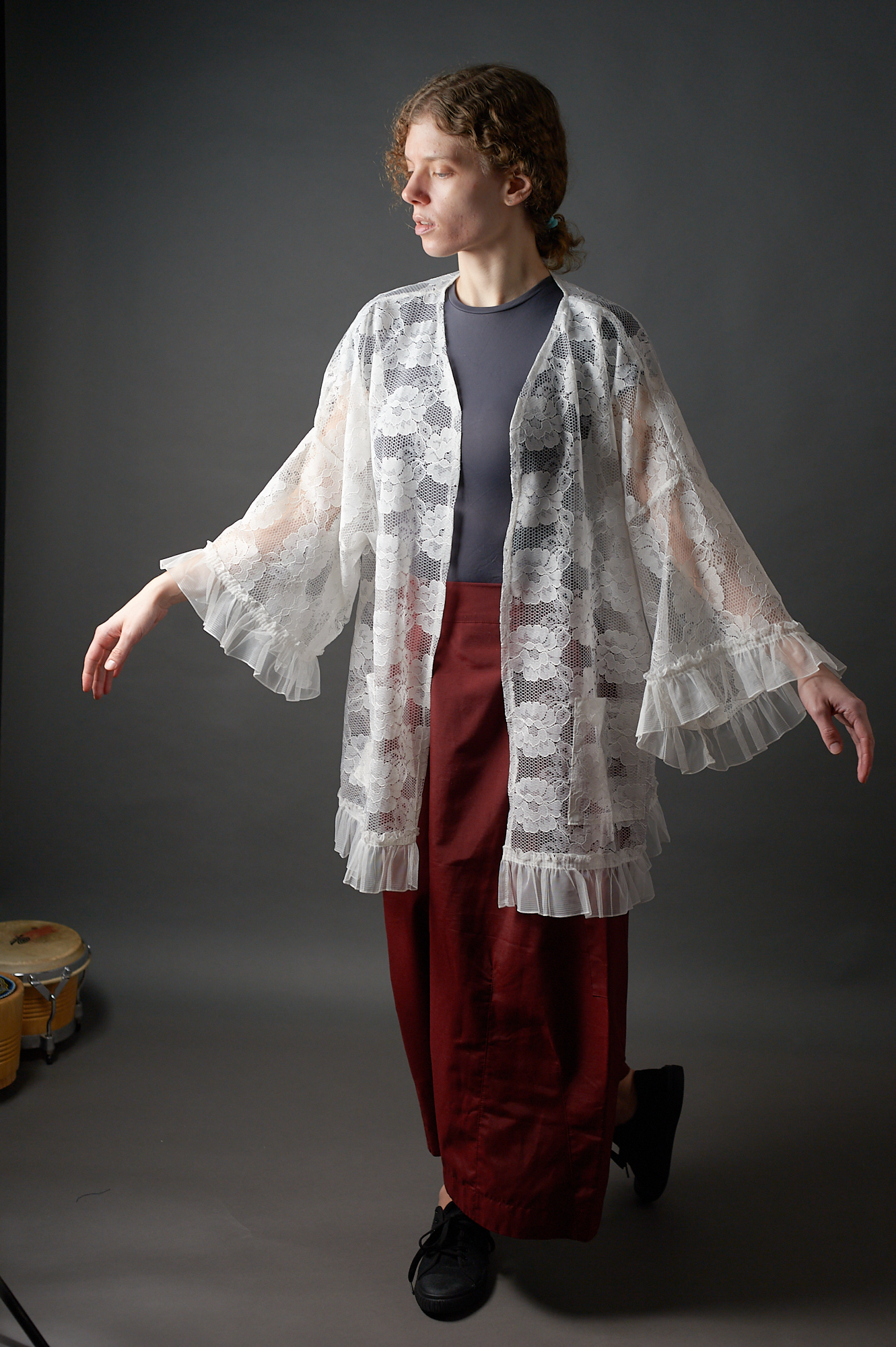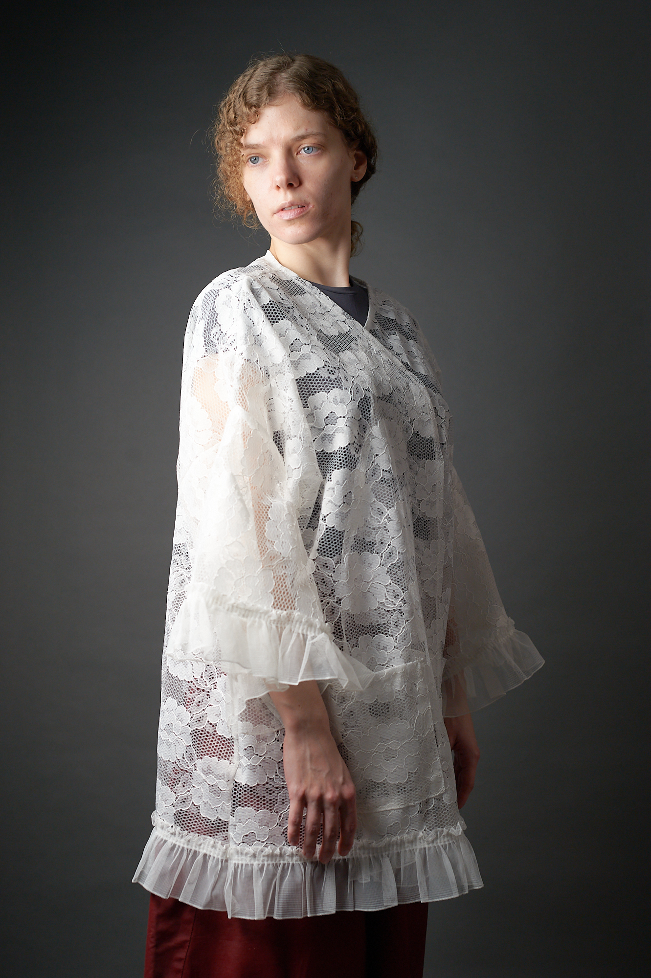 Długa kimonowa bluzka – płaszczyk z koronki