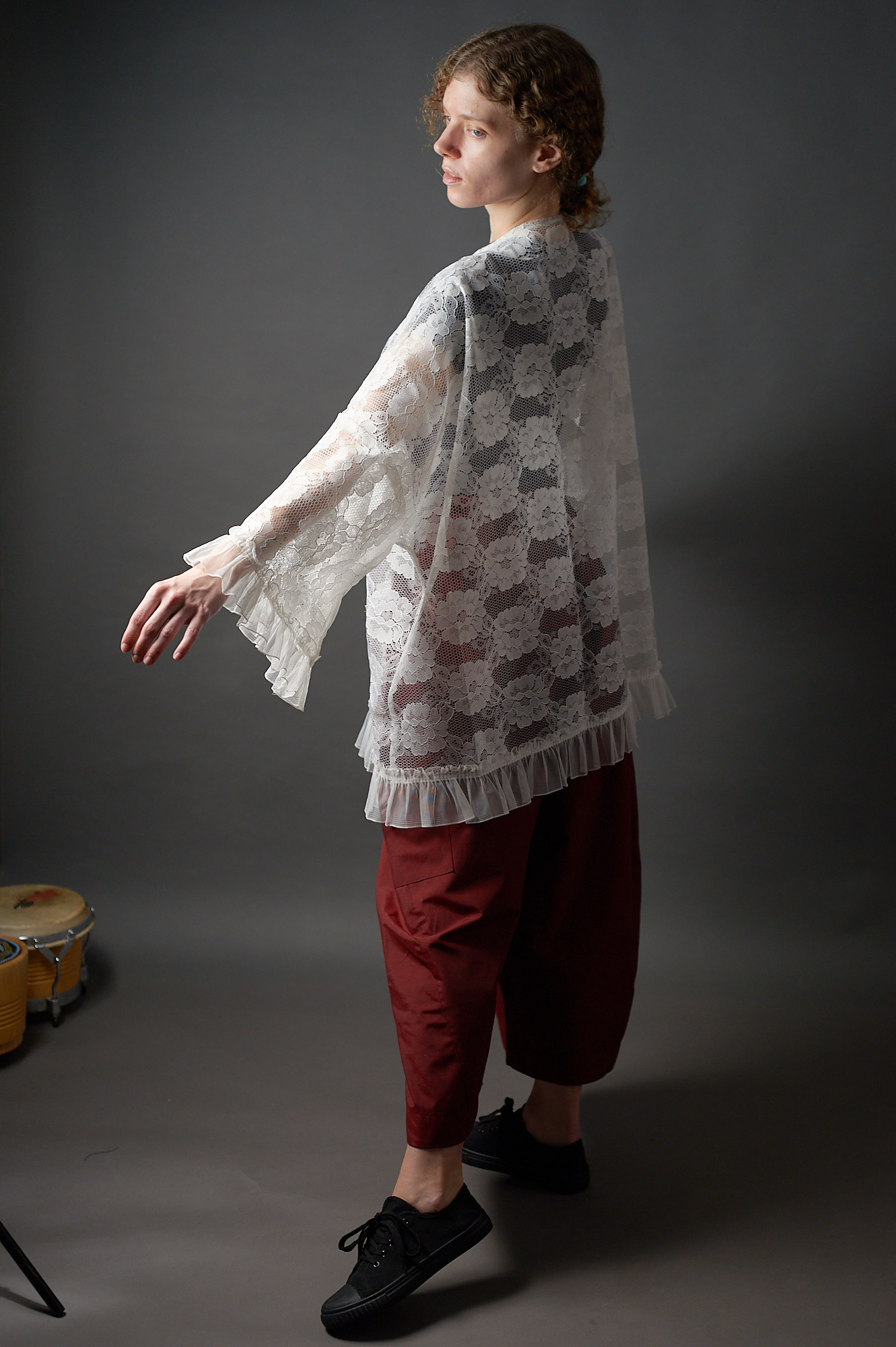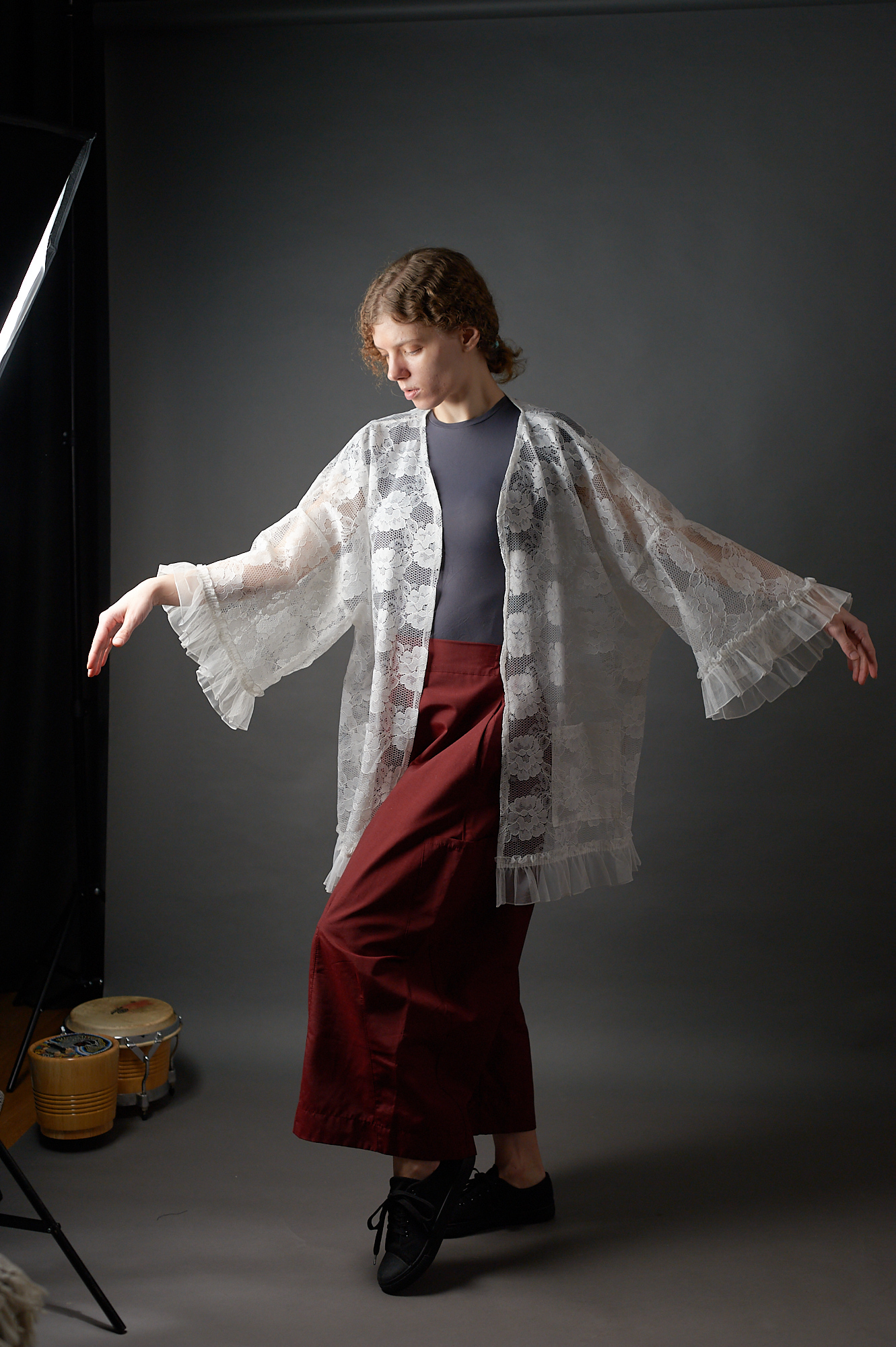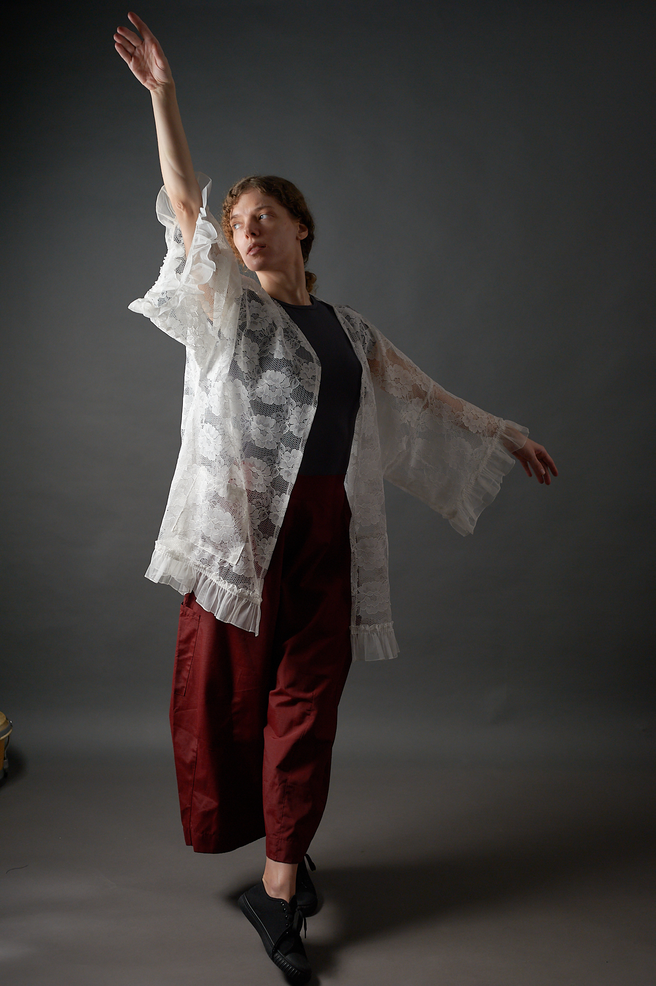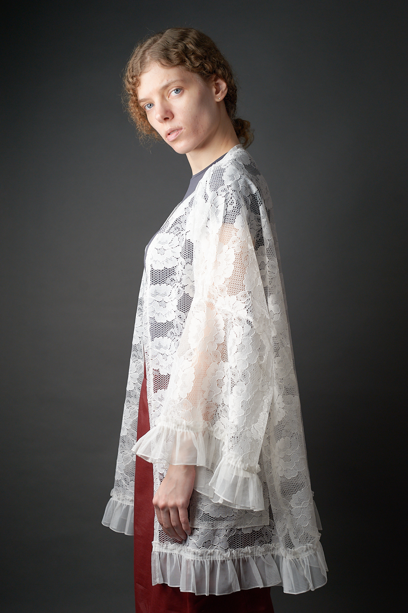 Długa kimonowa bluzka – płaszczyk z koronki