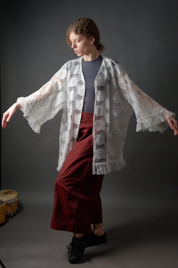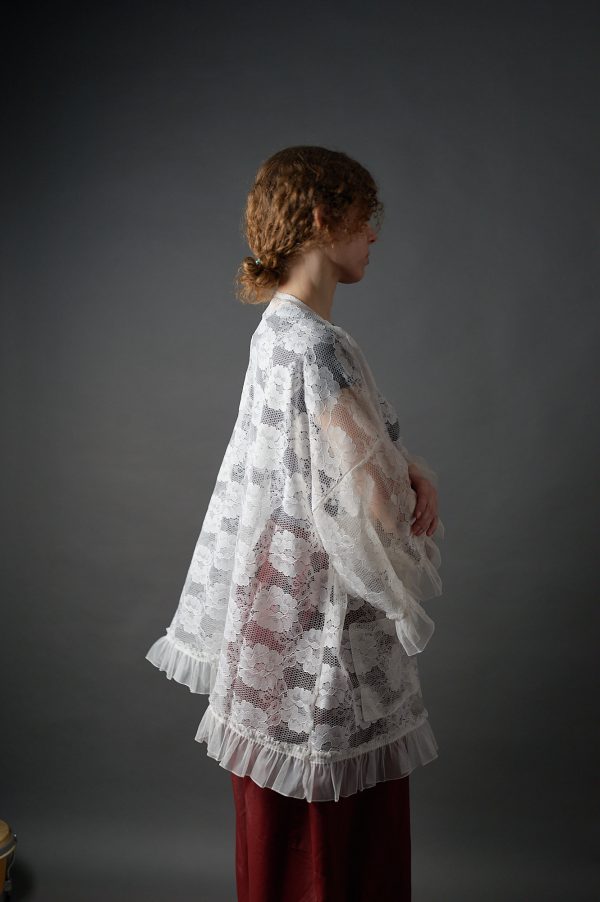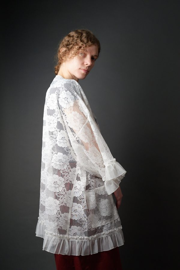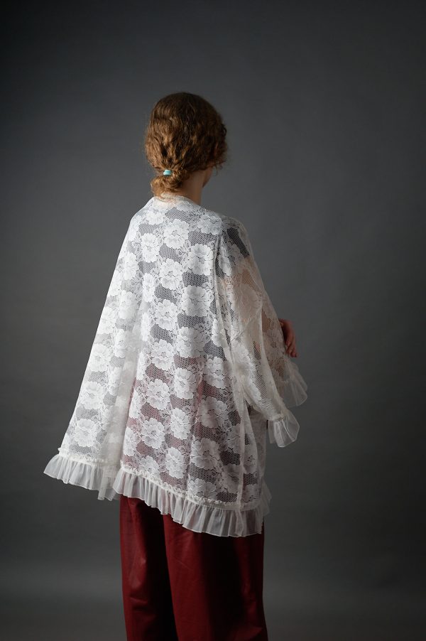 Długa biała bluzka kimonowa z koronki w stylu vintage – upcykling – Soie Star