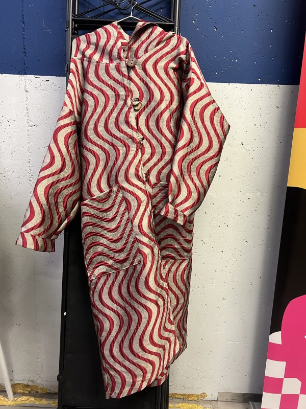 Odkryj ręcznie szyty, długi Plascz biało czerwony.