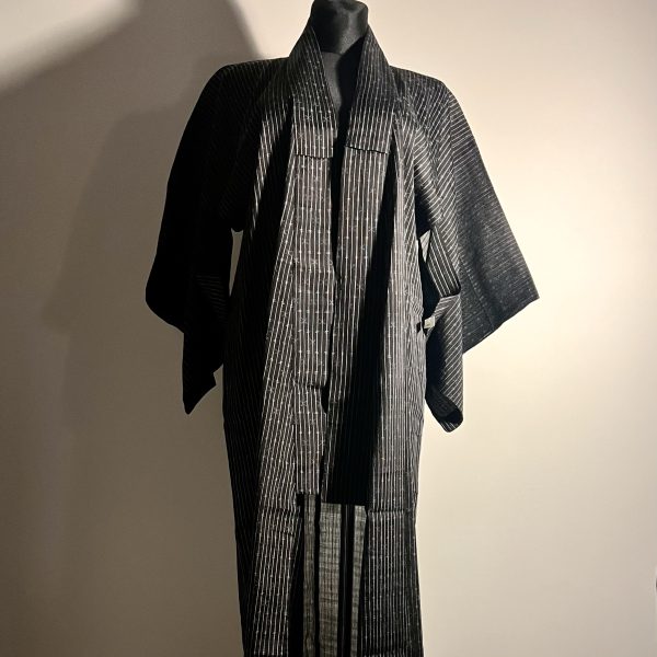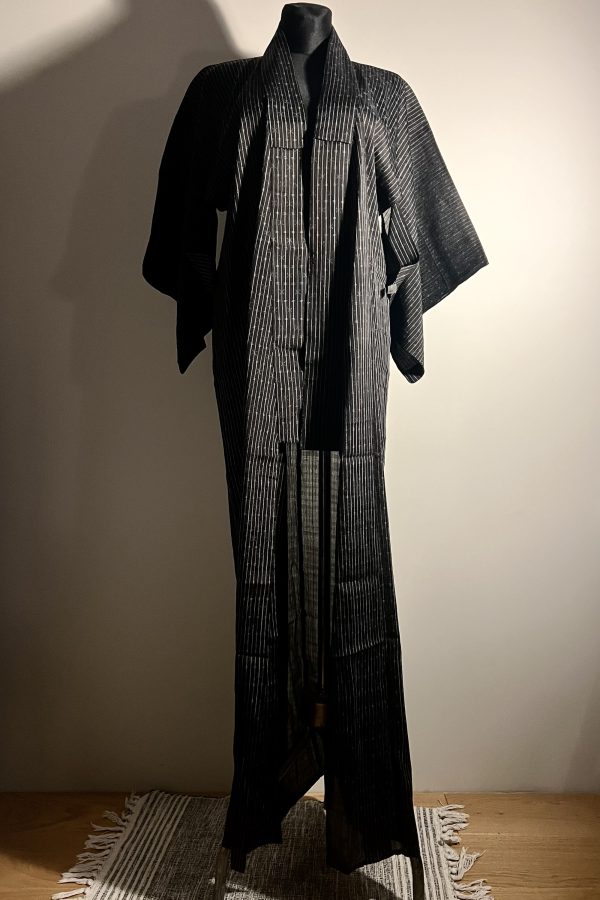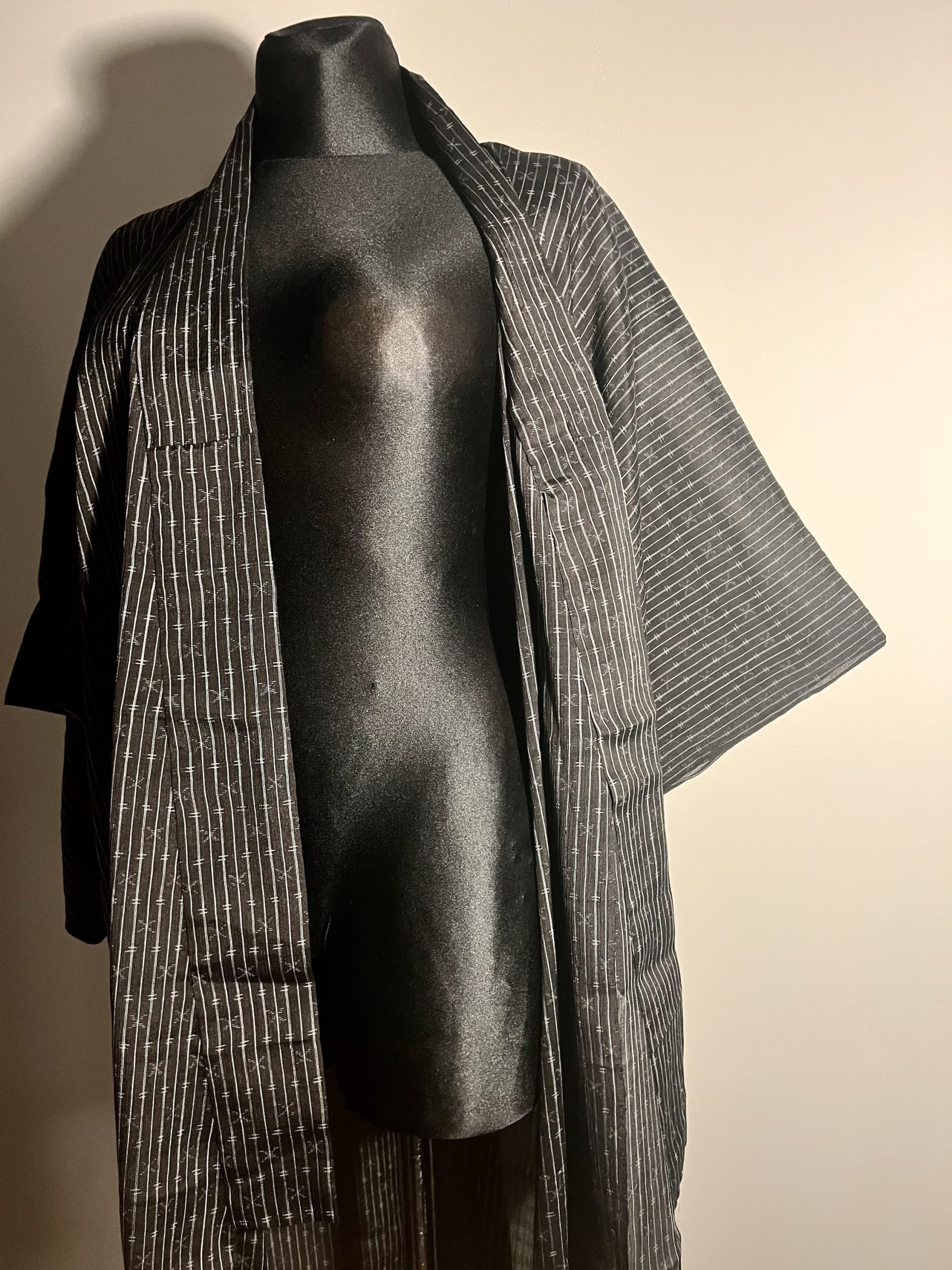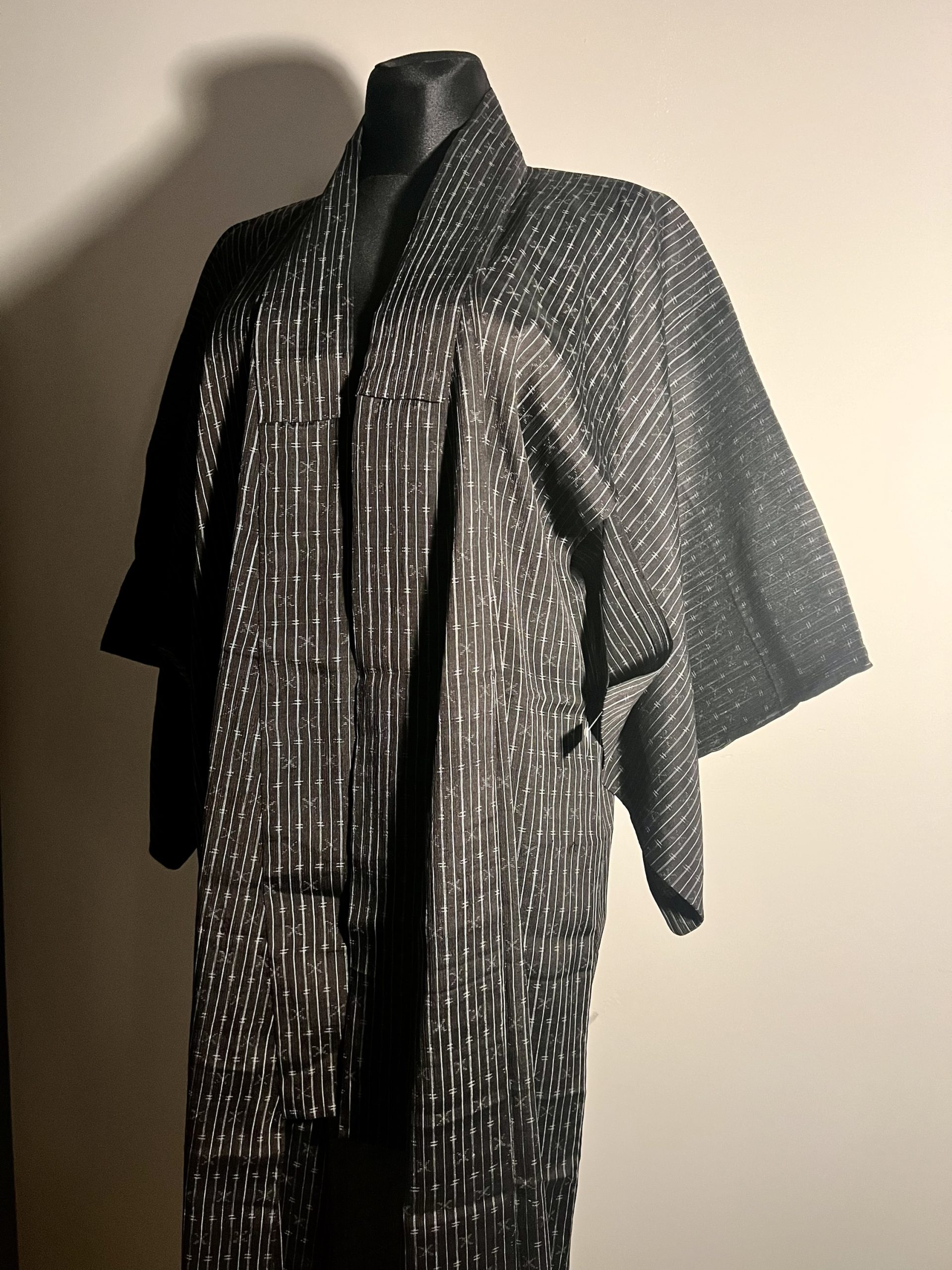 Kimono letnie cienkie, ciemne w klasyczny wzór japoński. Pokrzywa chińska