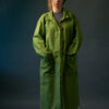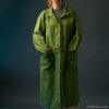 Płaszcz z kapturem z lnu – długi – zielony żakardowy
