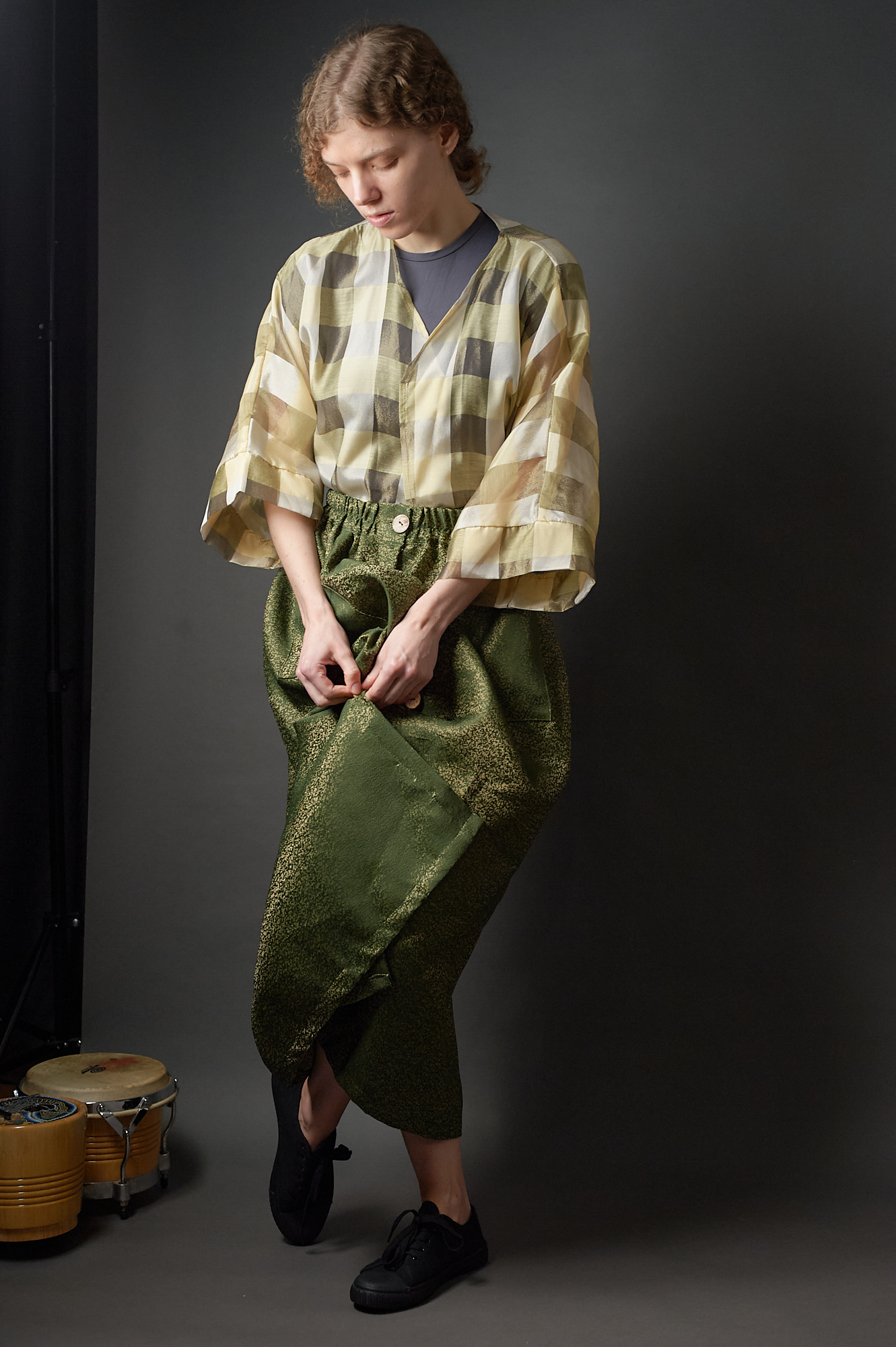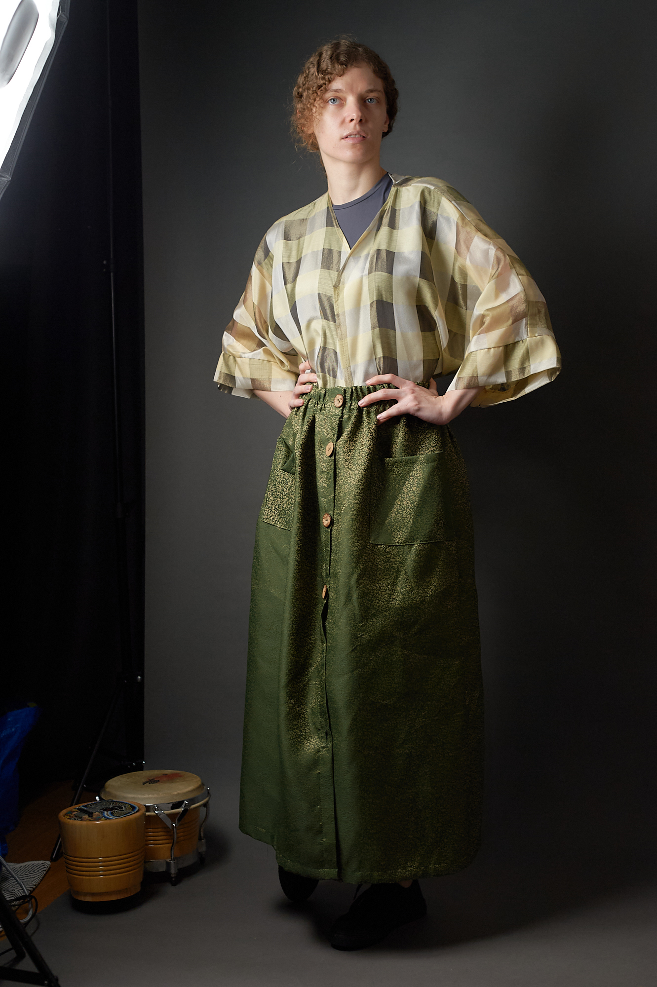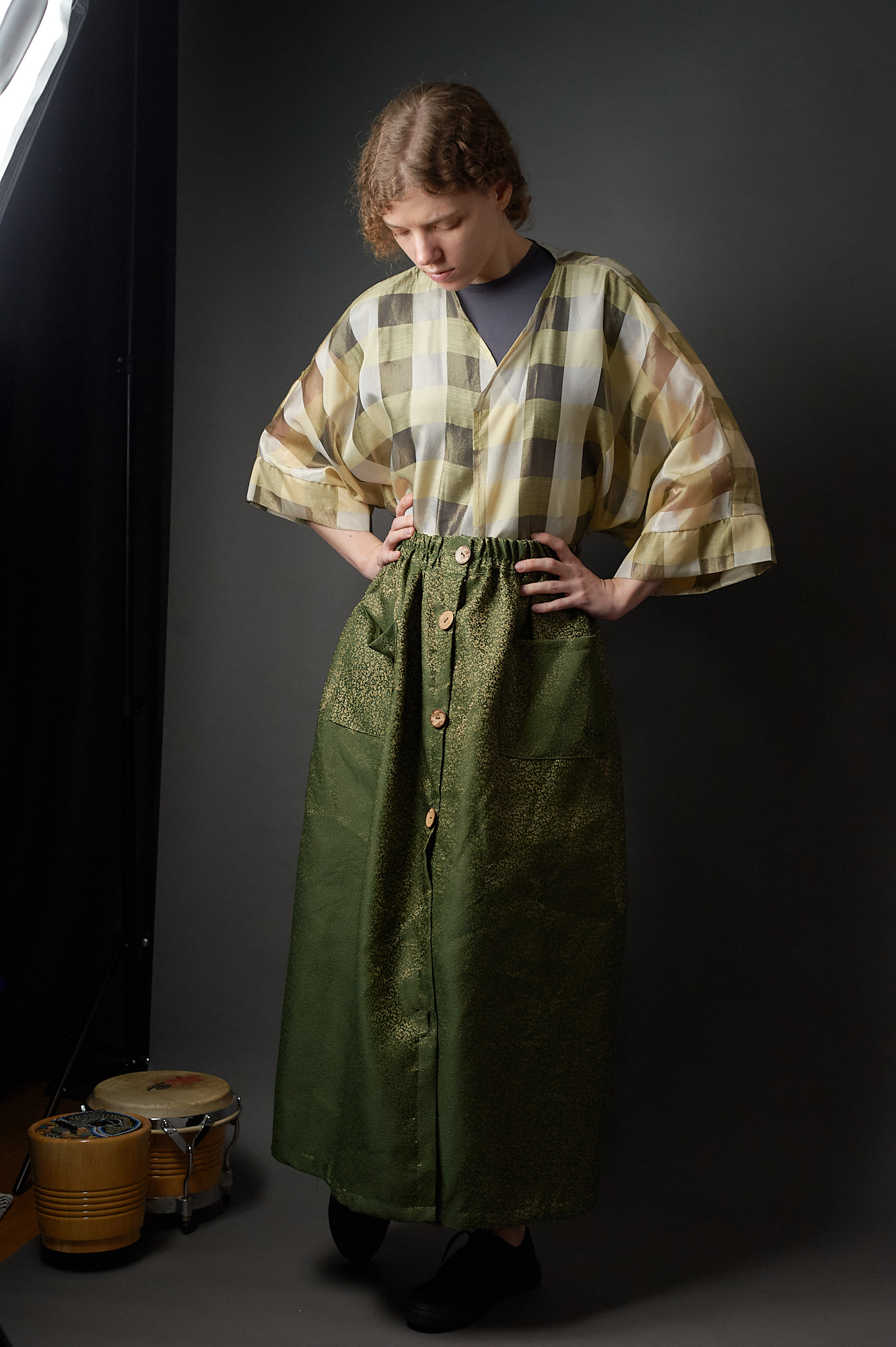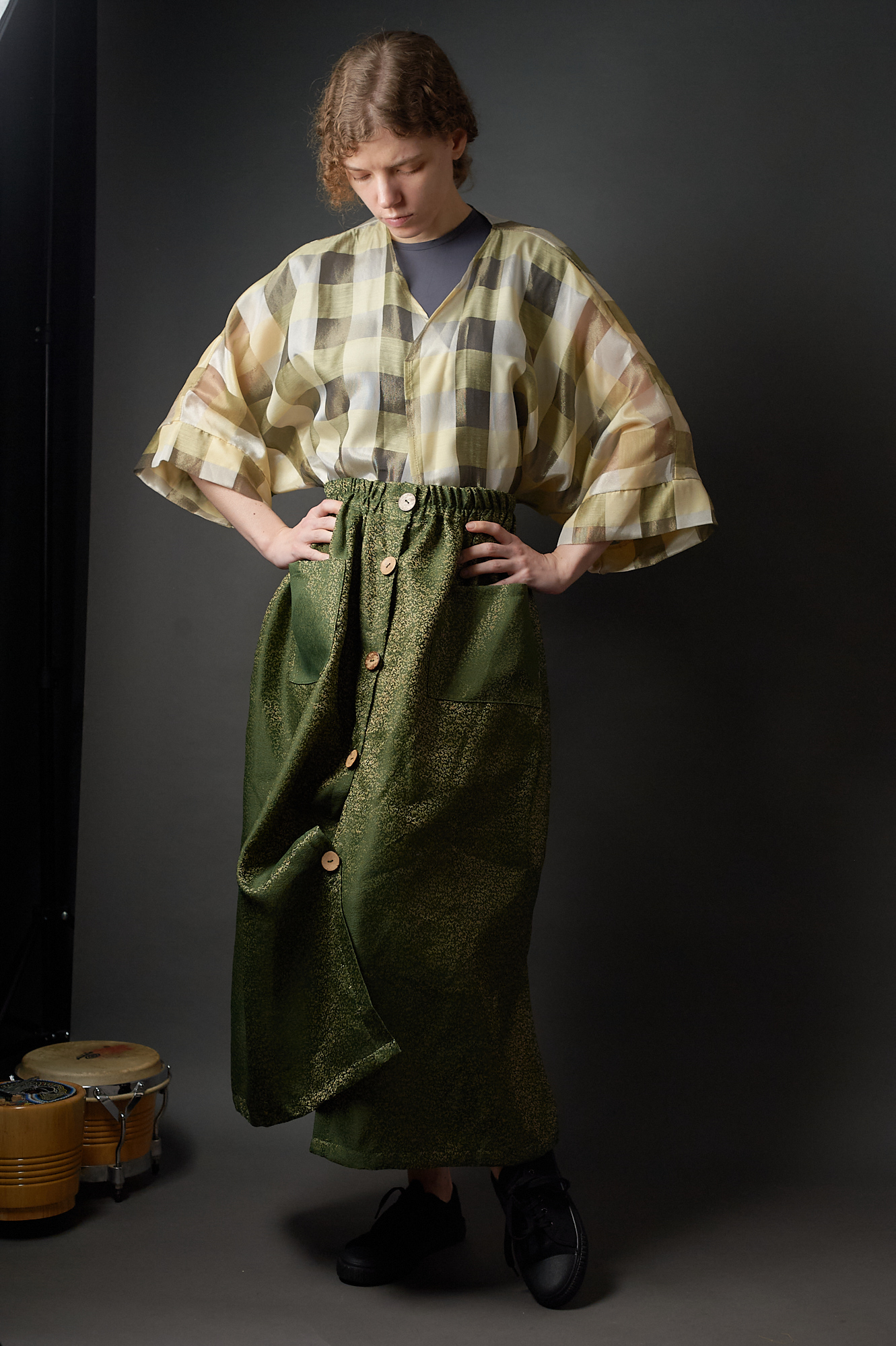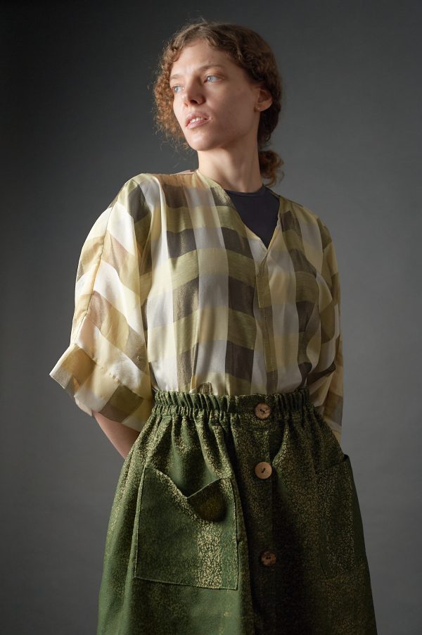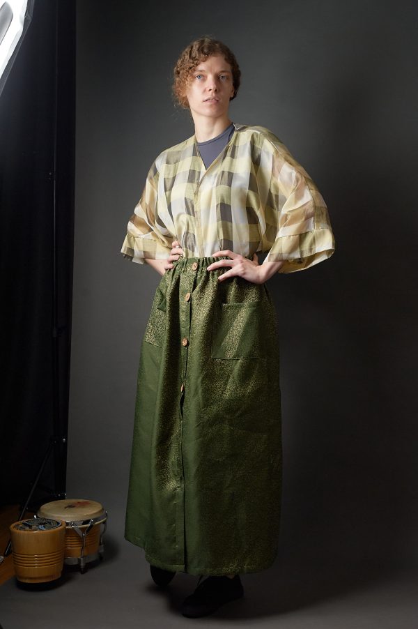 Spódnica zielono – złota zapinana na guziki w stylu vintage