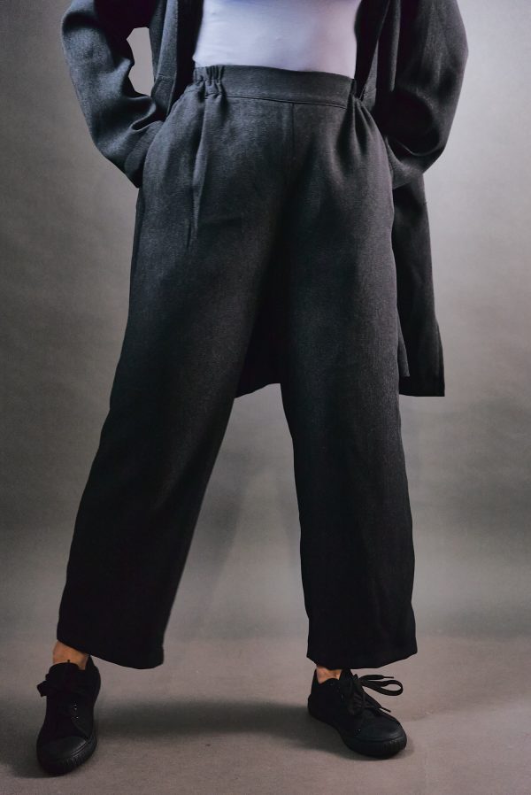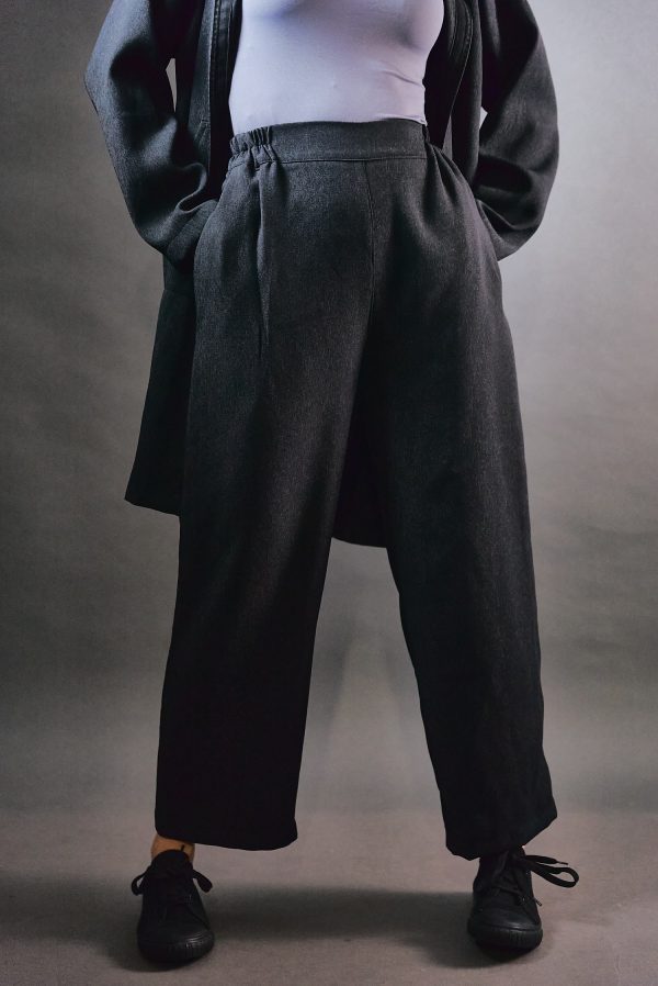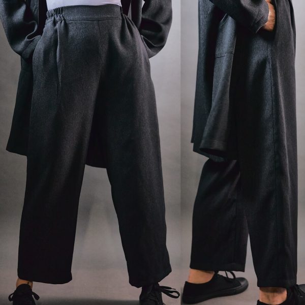 Tkanina dosyć ciężka, lekko rozciągliwa przez co świetnie układa się na sylwetce