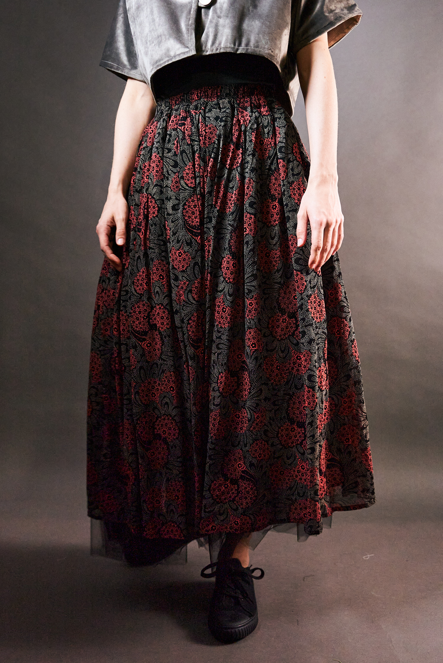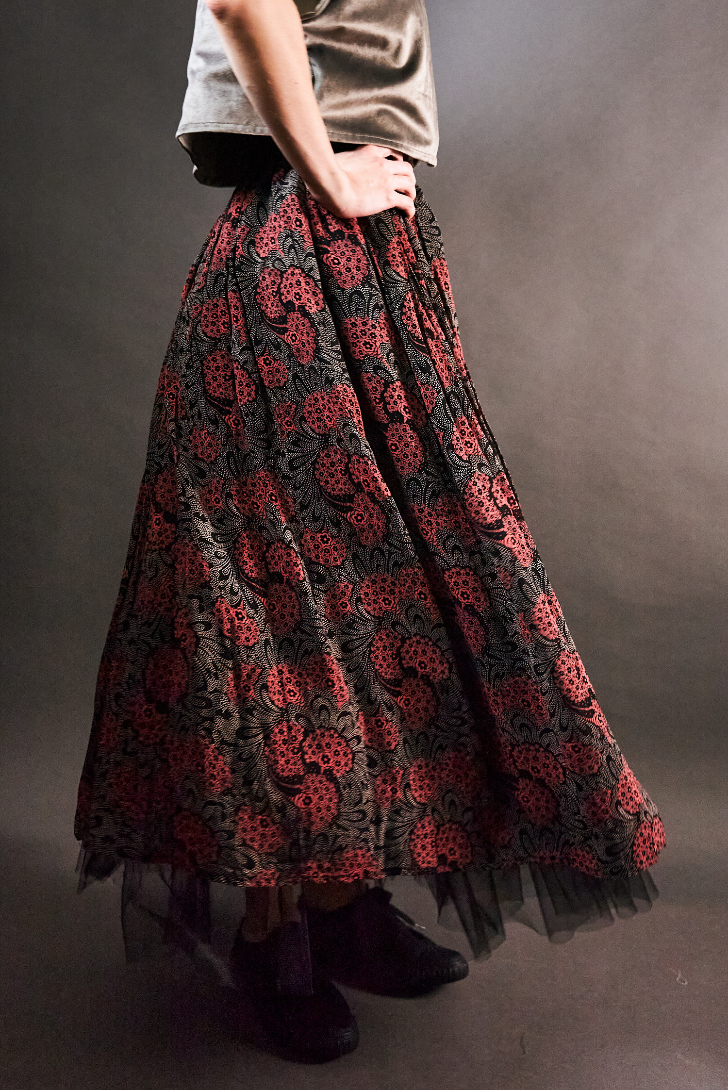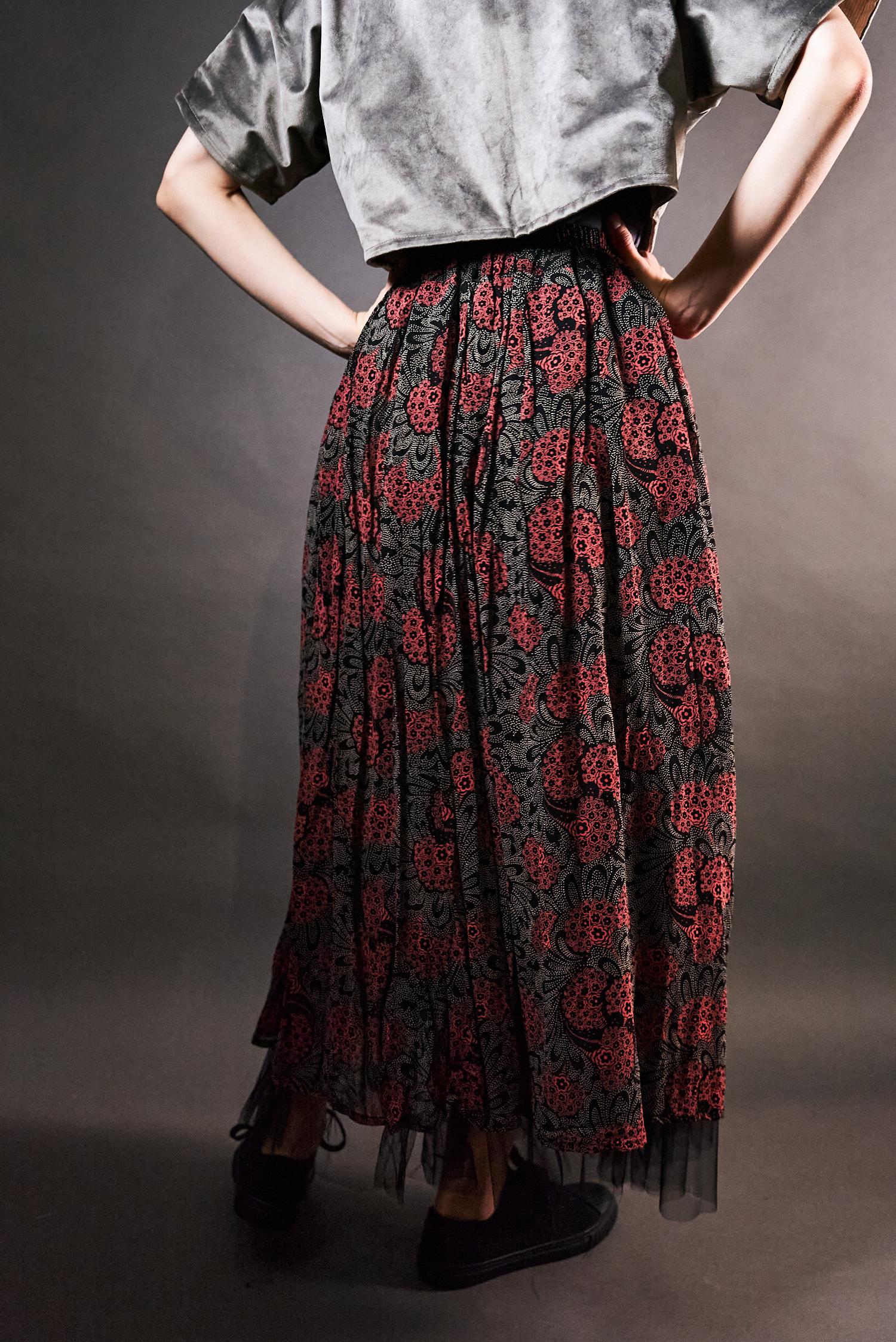 Wzorzysta spódnica z żorżety podbita czarnym tiulem – Soie Star