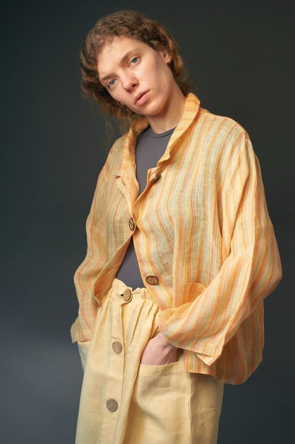 Żakiet lniany – tkanina sezonu zobacz więcej